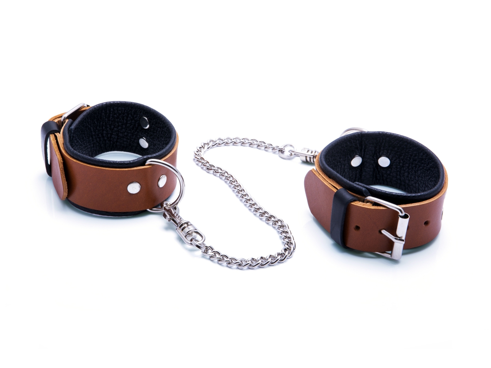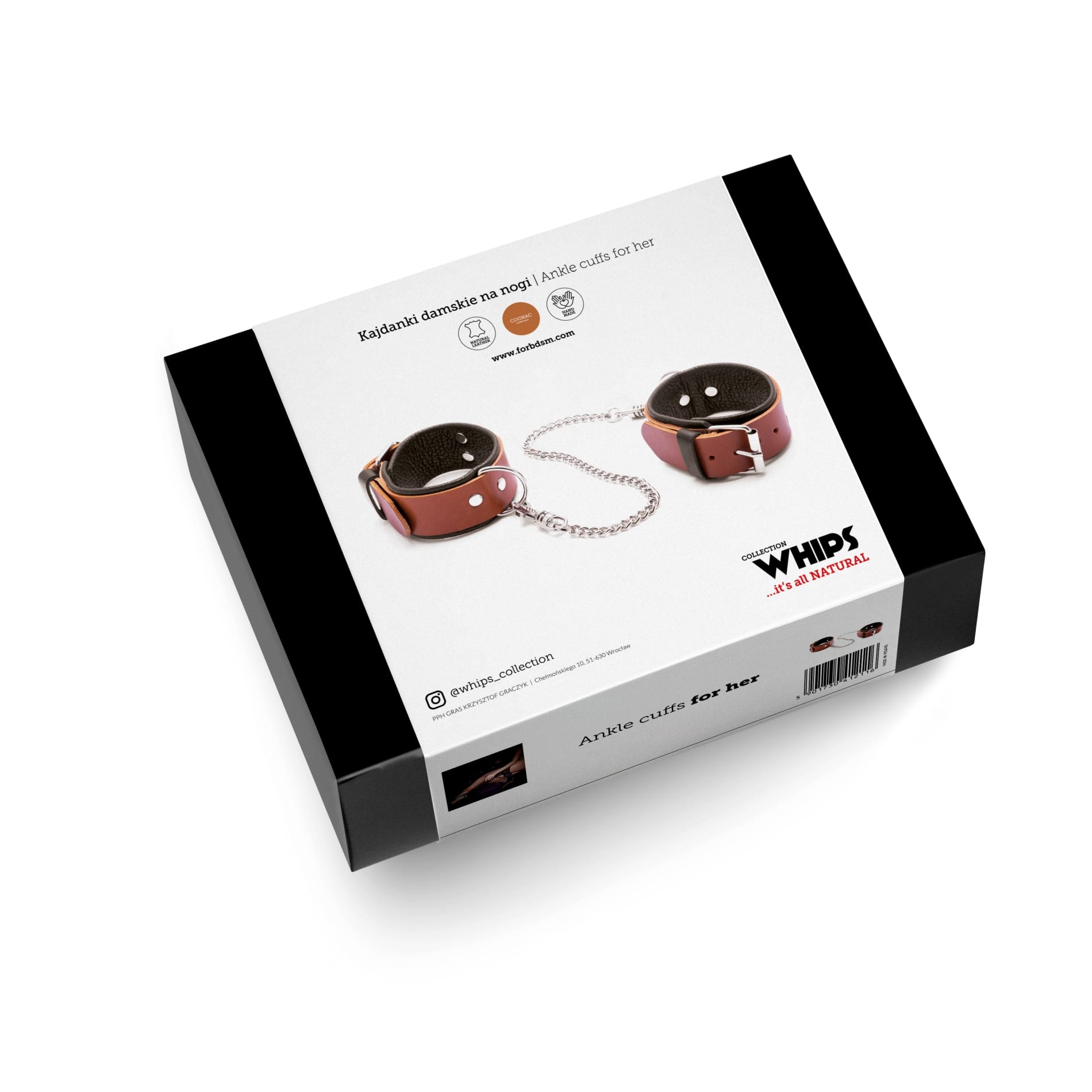 Kajdanki skórzane damskie na nogi 4cm, koniakowo-czarne