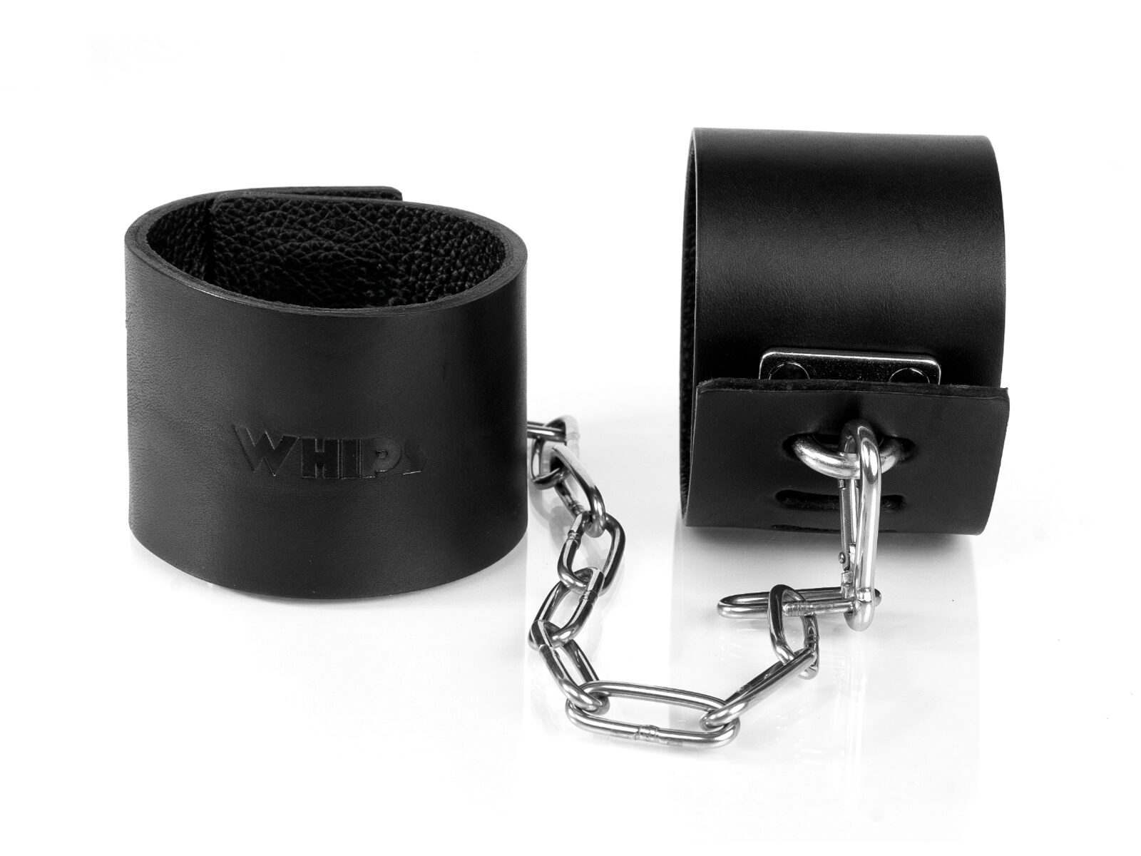 Kajdanki skórzane z kłódką i łańcuchem 6 cm, czarne – Primal Bond